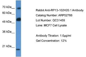 - This is a rabbit polyclonal antibody against RP13-102H20.1. It was validated on Western Blot.