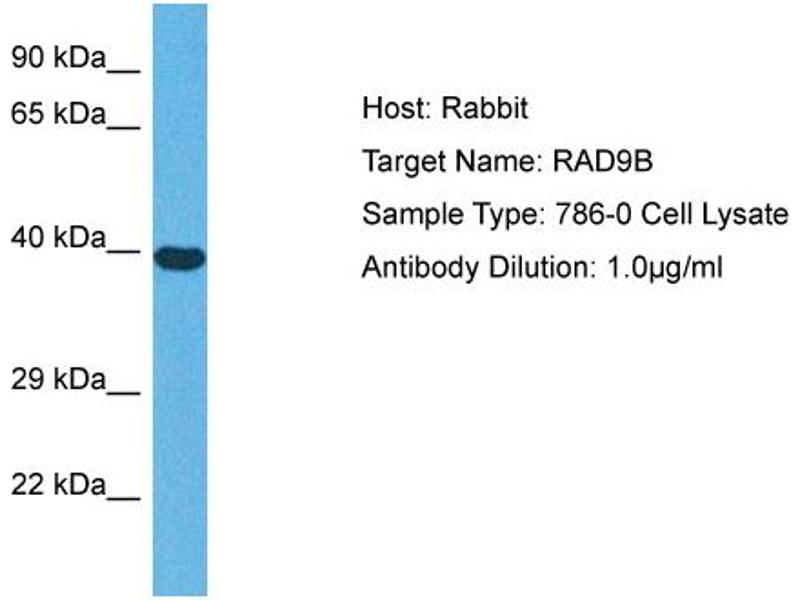 This is a rabbit polyclonal antibody against RAD9B. It was validated on Western Blot.