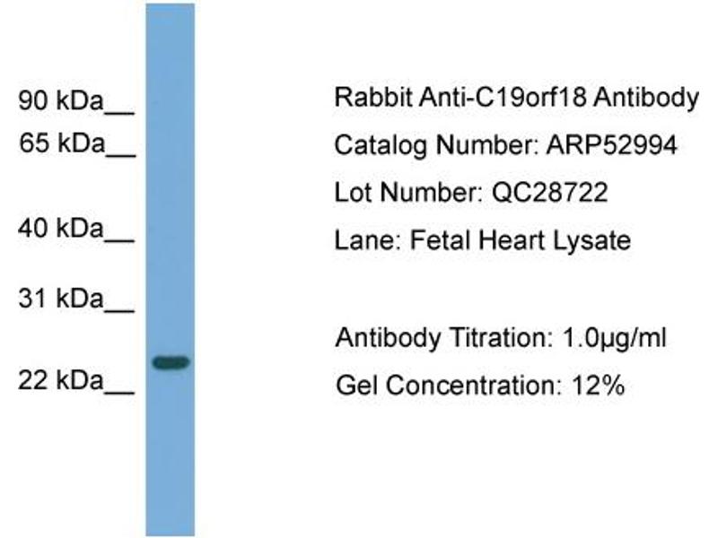 - This is a rabbit polyclonal antibody against C19orf18. It was validated on Western Blot.