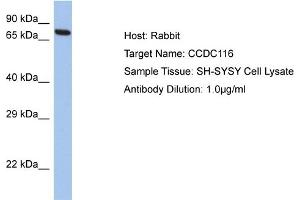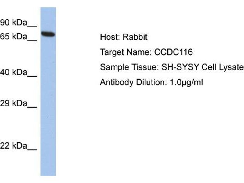 This is a rabbit polyclonal antibody against CCDC116. It was validated on Western Blot.