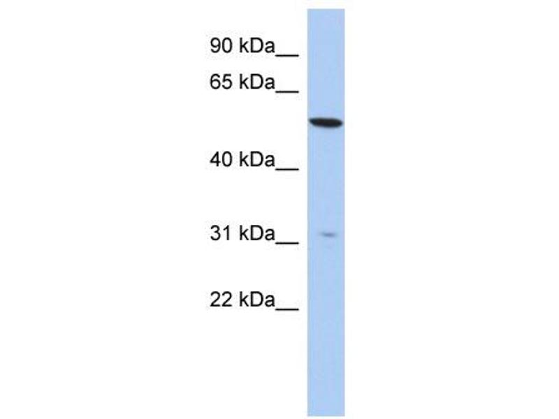 This is a rabbit polyclonal antibody against TMEM161B. It was validated on Western Blot using a cell lysate as a positive control.