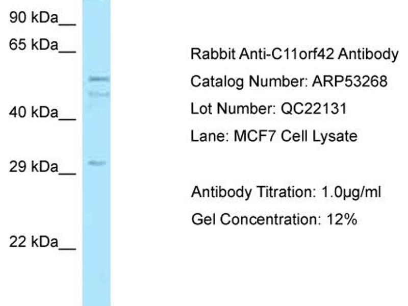 - This is a rabbit polyclonal antibody against C11orf42. It was validated on Western Blot.