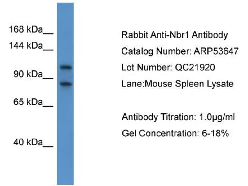 - This is a rabbit polyclonal antibody against Nbr1. It was validated on Western Blot.