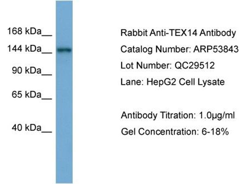 - This is a rabbit polyclonal antibody against TEX14. It was validated on Western Blot.