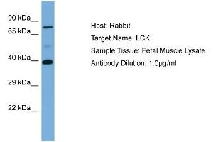 This Rabbit Polyclonal antibody specifically detects LCK in WB. It exhibits reactivity toward Human, Mouse, Rat, Cow, Pig, Sheep, Rabbit, Dog, Horse and Guinea Pig.