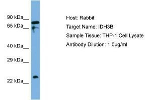 The Rabbit Polyclonal anti-IDH3B antibody is suitable to detect IDH3B in samples from Human, Mouse, Rat, Cow, Dog, Guinea Pig, Horse, Rabbit, Zebrafish (Danio rerio), Goat and Saccharomyces cerevisiae. It has been validated for WB.