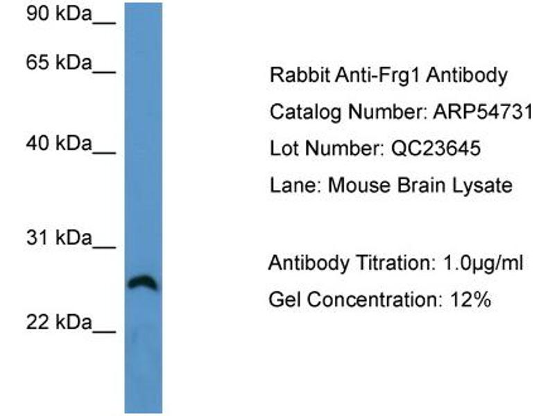 - This is a rabbit polyclonal antibody against Frg1. It was validated on Western Blot.