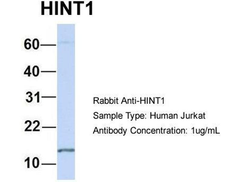 - This is a rabbit polyclonal antibody against HINT1. It was validated on Western Blot using a cell lysate as a positive control.