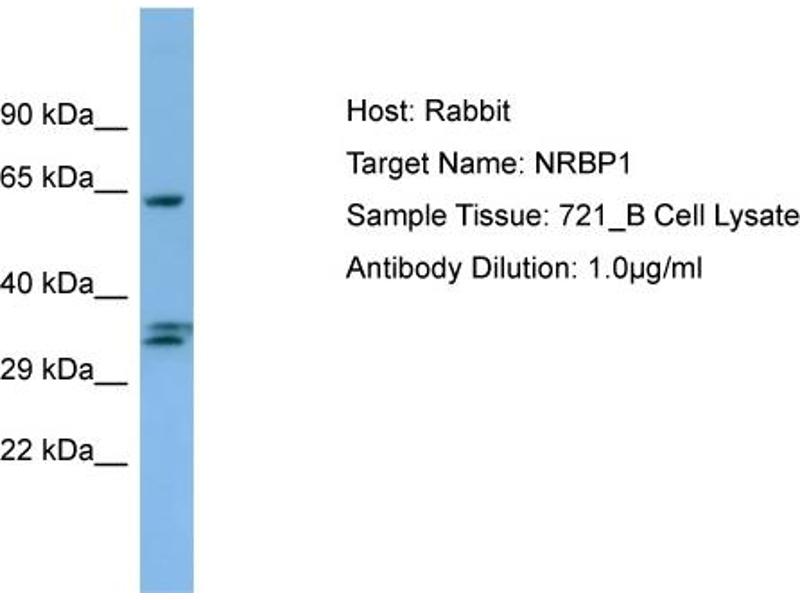 This is a rabbit polyclonal antibody against NRBP1. It was validated on Western Blot.