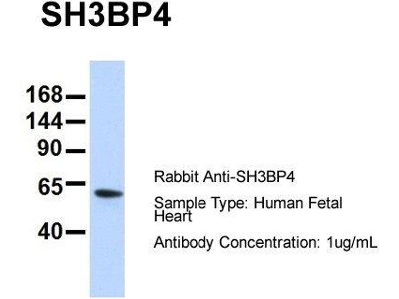 - The immunogen is a synthetic peptide directed towards the N terminal region of human SH3BP4