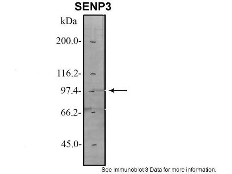 - This is a rabbit polyclonal antibody against SENP3. It was validated on Western Blot using a cell lysate as a positive control.