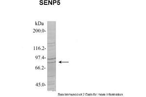 - The immunogen is a synthetic peptide directed towards the middle region of human SENP5