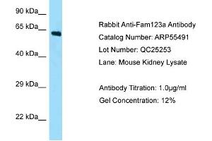 - This is a rabbit polyclonal antibody against Fam123a. It was validated on Western Blot.