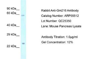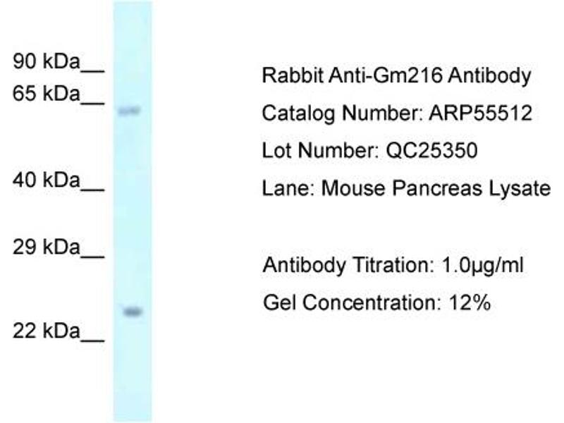 Quick Overview for GM216 antibody (Middle Region) (ABIN2786243)