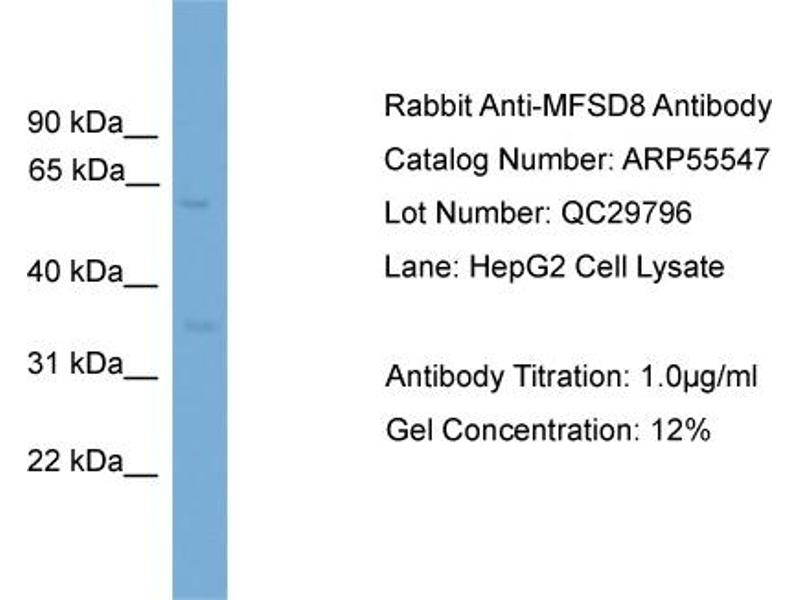 - This is a rabbit polyclonal antibody against MFSD8. It was validated on Western Blot.