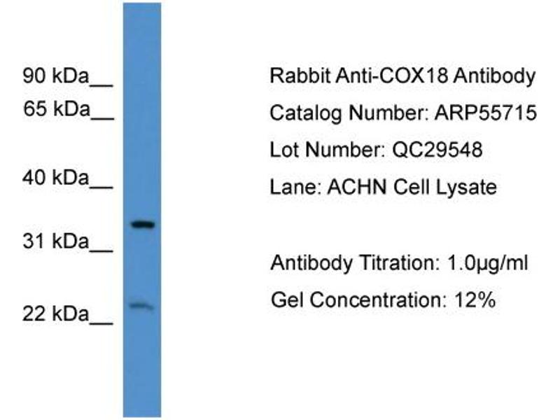 - This is a rabbit polyclonal antibody against COX18. It was validated on Western Blot.