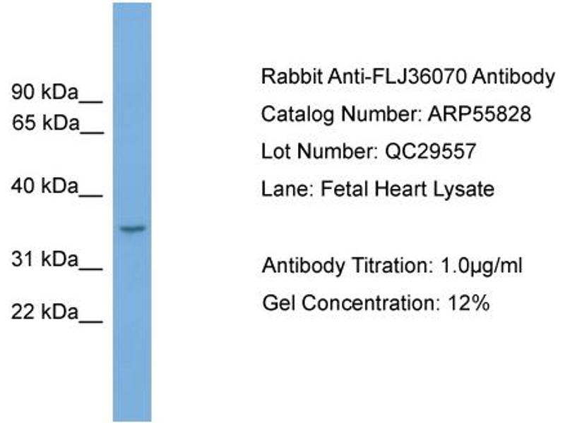 - This is a rabbit polyclonal antibody against FLJ36070. It was validated on Western Blot.