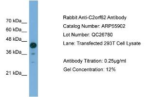 - This is a rabbit polyclonal antibody against C2orf62. It was validated on Western Blot.