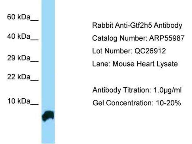 - This is a rabbit polyclonal antibody against Gtf2h5. It was validated on Western Blot.