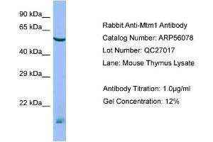 This is a rabbit polyclonal antibody against Mtm1. It was validated on Western Blot.