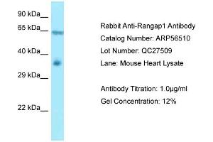 This is a rabbit polyclonal antibody against Rangap1. It was validated on Western Blot.