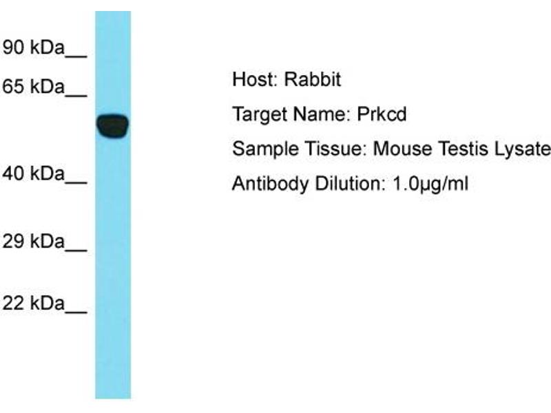 The Rabbit Polyclonal anti-PKC delta antibody is suitable to detect PKC delta in samples from Human, Mouse, Rat, Cow, Dog, Rabbit, Horse and Guinea Pig. It has been validated for WB.