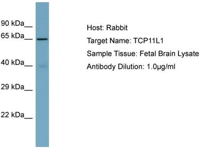 This is a rabbit polyclonal antibody against TCP11L1. It was validated on Western Blot.