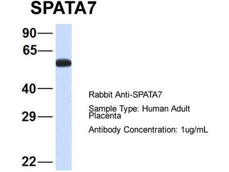 - This is a rabbit polyclonal antibody against SPATA7. It was validated on Western Blot using a cell lysate as a positive control.