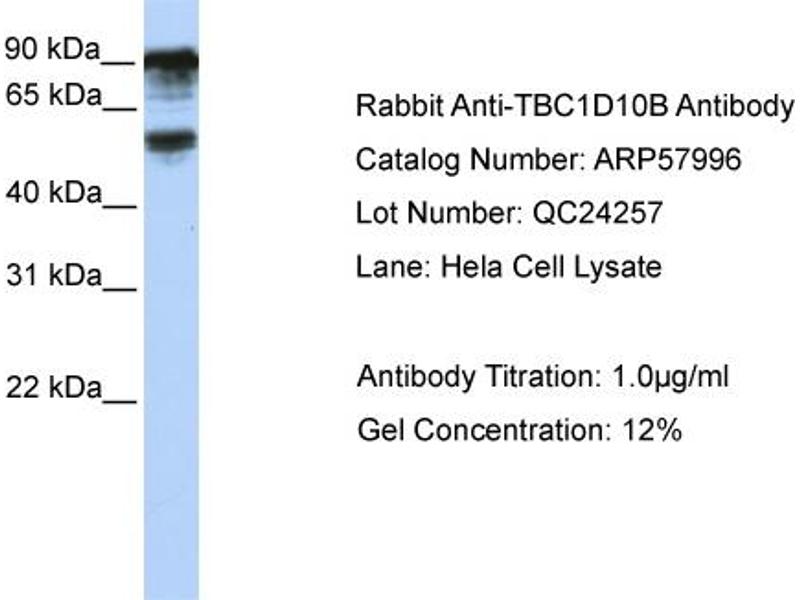 - This is a rabbit polyclonal antibody against TBC1D10B. It was validated on Western Blot using a cell lysate as a positive control.