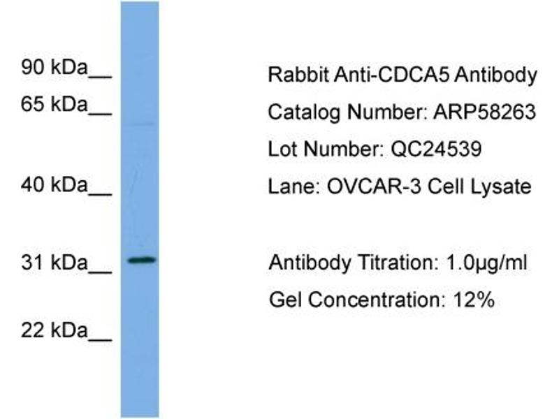 - This is a rabbit polyclonal antibody against CDCA5. It was validated on Western Blot.