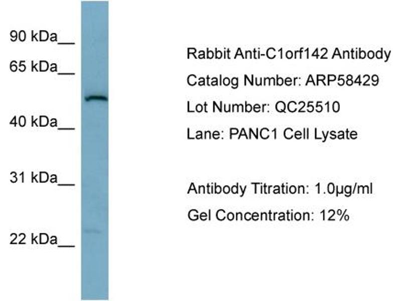 - This is a rabbit polyclonal antibody against C1orf142. It was validated on Western Blot using a cell lysate as a positive control.