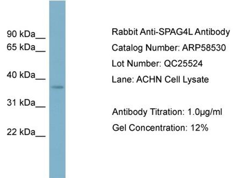 - This is a rabbit polyclonal antibody against SPAG4L. It was validated on Western Blot using a cell lysate as a positive control.