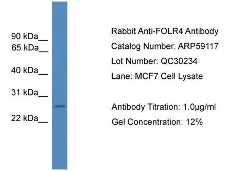 - This is a rabbit polyclonal antibody against FOLR4. It was validated on Western Blot.