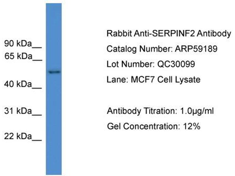 - This is a rabbit polyclonal antibody against SERPINF2. It was validated on Western Blot.