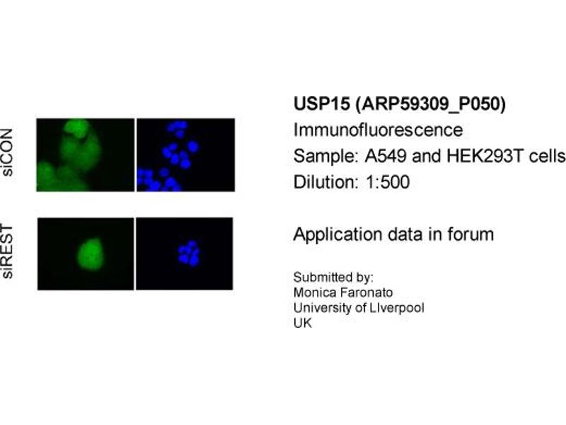 - The immunogen is a synthetic peptide directed towards the C terminal region of human USP15