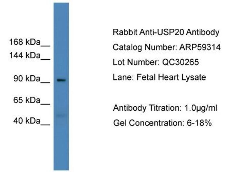 - This is a rabbit polyclonal antibody against USP20. It was validated on Western Blot.