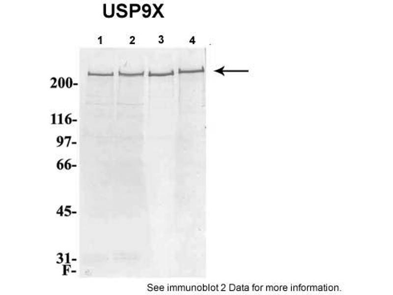 - The immunogen is a synthetic peptide directed towards the C terminal region of human USP9X