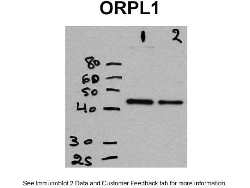 - The immunogen is a synthetic peptide directed towards the middle region of human OPRL1