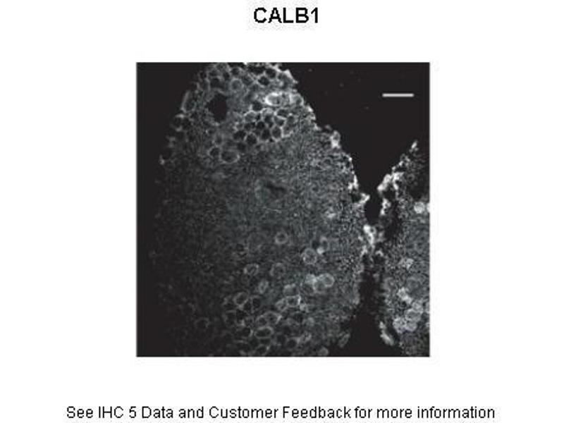 - The immunogen is a synthetic peptide directed towards the C terminal region of human CALB1