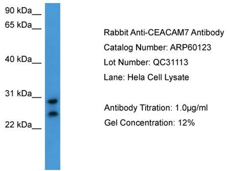 - This is a rabbit polyclonal antibody against CEACAM7. It was validated on Western Blot.