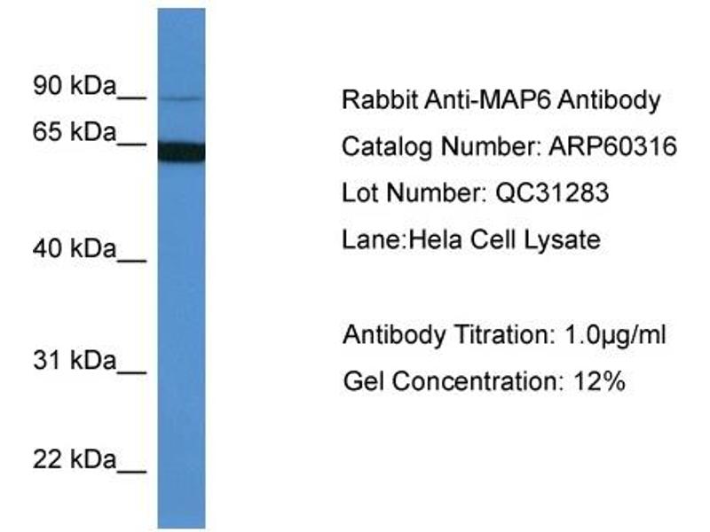 - This is a rabbit polyclonal antibody against MAP6. It was validated on Western Blot.