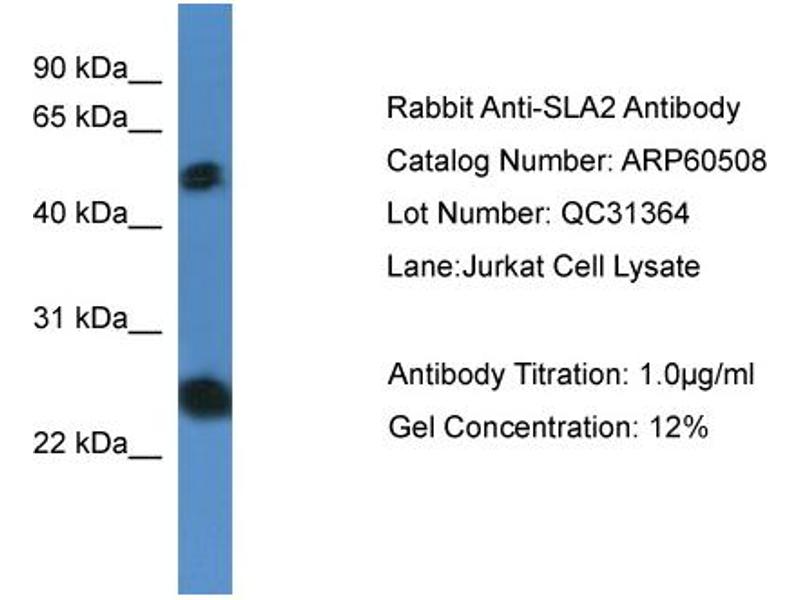 - This is a rabbit polyclonal antibody against SLA2. It was validated on Western Blot.