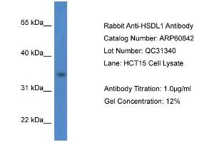 This is a rabbit polyclonal antibody against HSDL1. It was validated on Western Blot.