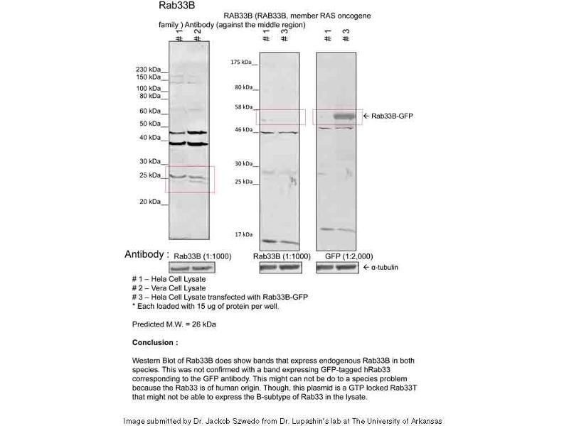- This is a rabbit polyclonal antibody against RAB33B. It was validated on Western Blot.