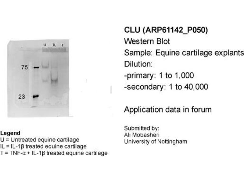 - This is a rabbit polyclonal antibody against CLU. It was validated on Western Blot.