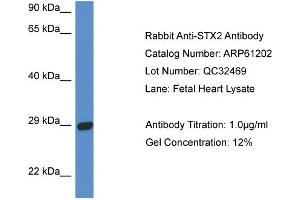 - This is a rabbit polyclonal antibody against STX2. It was validated on Western Blot.