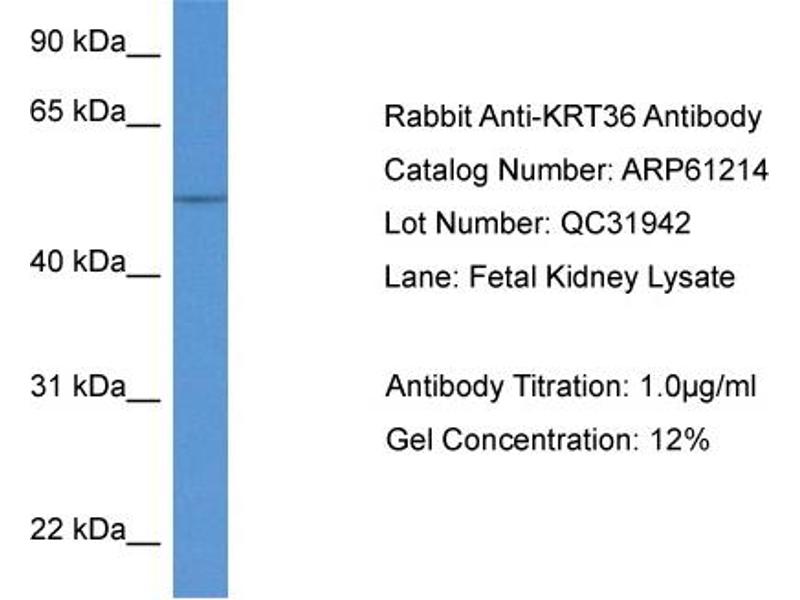 - This is a rabbit polyclonal antibody against KRT36. It was validated on Western Blot.