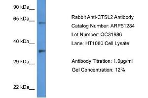 This is a rabbit polyclonal antibody against CTSL2. It was validated on Western Blot.