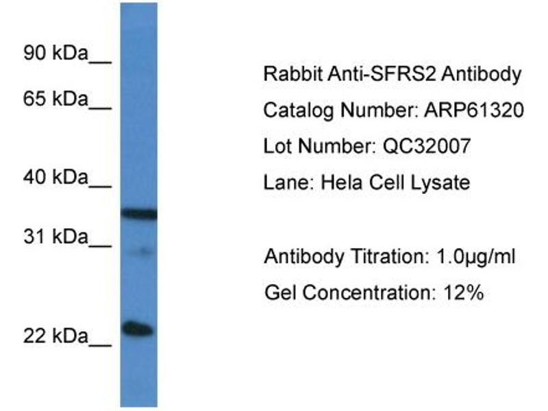- This is a rabbit polyclonal antibody against SFRS2. It was validated on Western Blot.