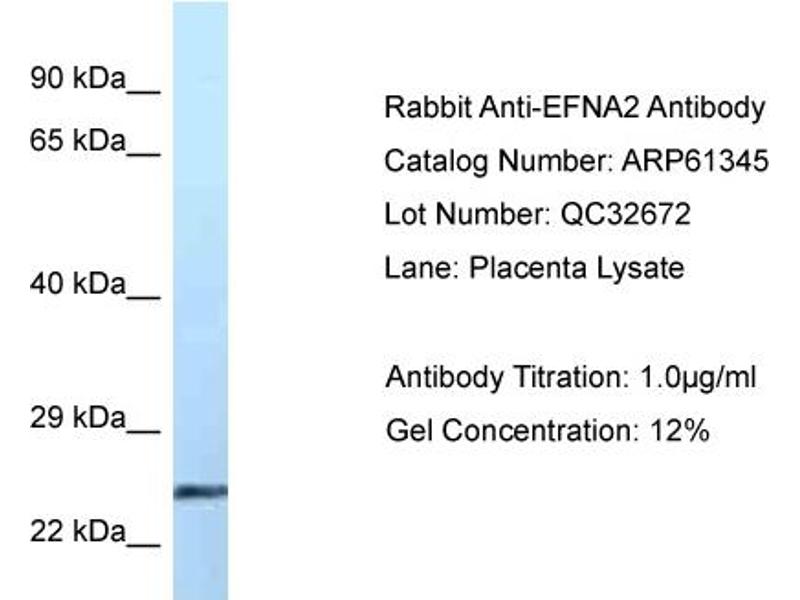 This is a rabbit polyclonal antibody against EFNA2. It was validated on Western Blot.